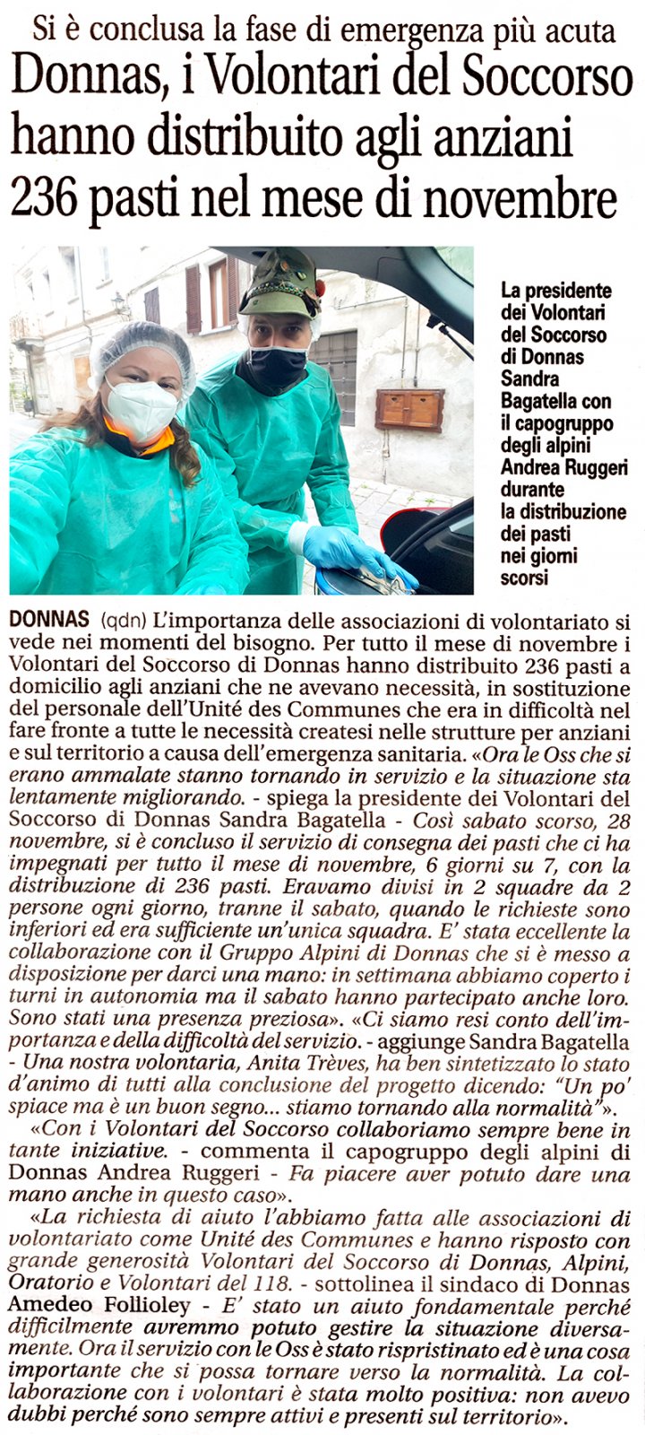 In questo momento di difficoltà a causa del dilagare dell'epidemia COVID19 abbiamo risposto all'appello del nostro sindaco e abbiamo iniziato a consegnare i pasti agli anziani di Donnas.