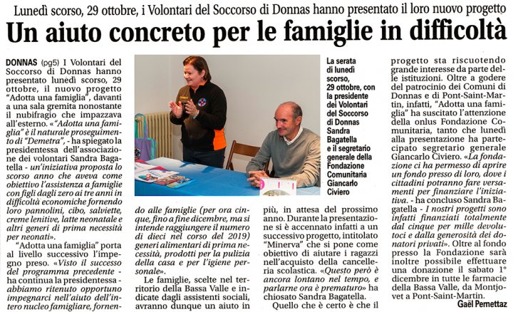Sabato 1 dicembre durante tutta la mattinata i nostri volontari sono stati impegnati nelle farmacie della bassa valle per la raccolta del Progetto Demetra. Abbiamo raccolto generi di prima necessità per bimbi fino ai 3 anni. La raccolta è stata molto soddisfacente ed è aumentata del 15% rispetto al 2017.