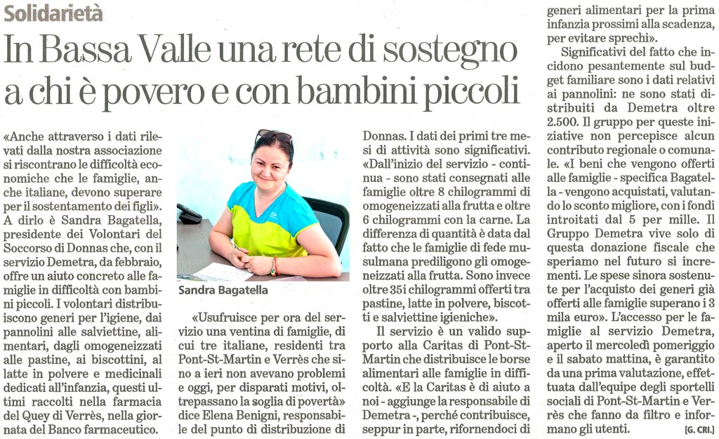 In Bassa Valle una rete di sostegno a chi è povero e con bambini