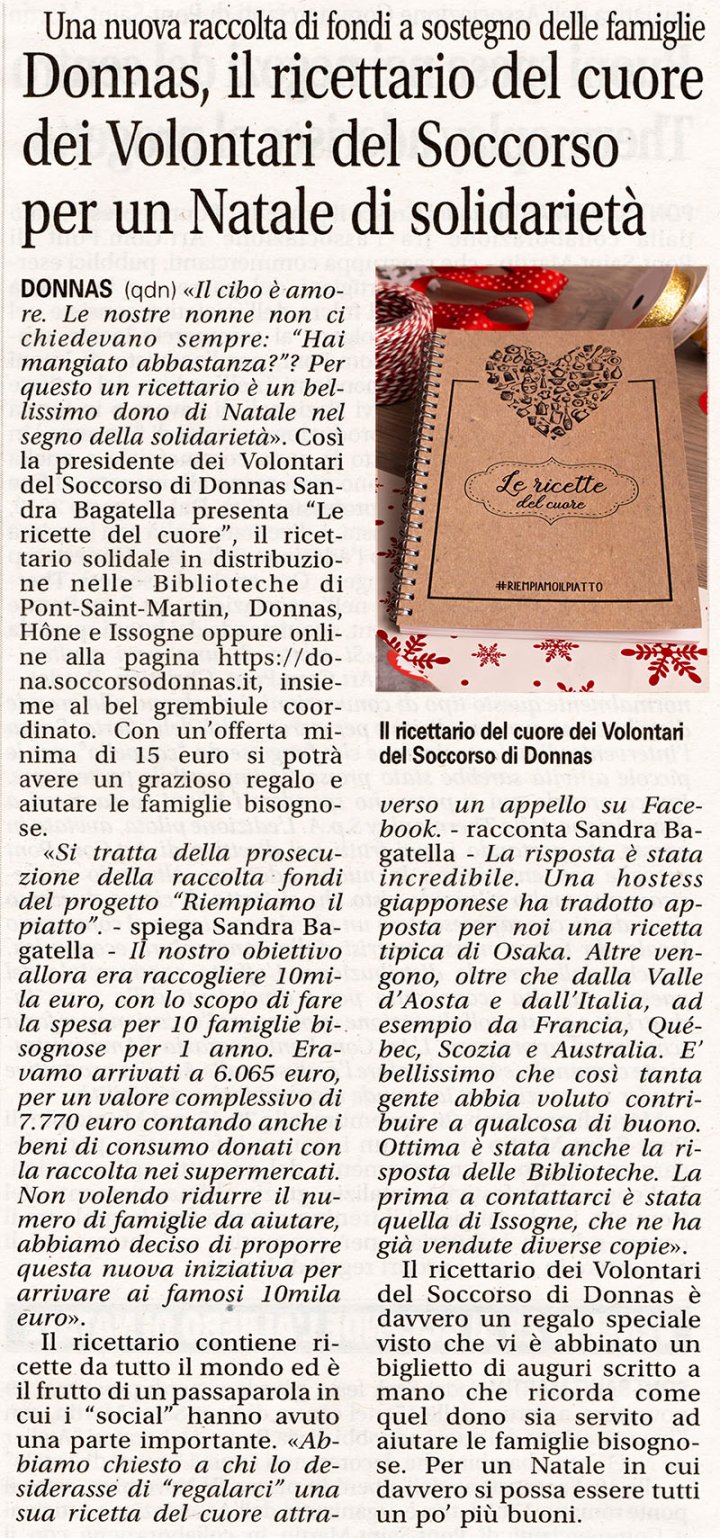 Una nuova raccolta di fondi a sostegno delle famiglie Donnas