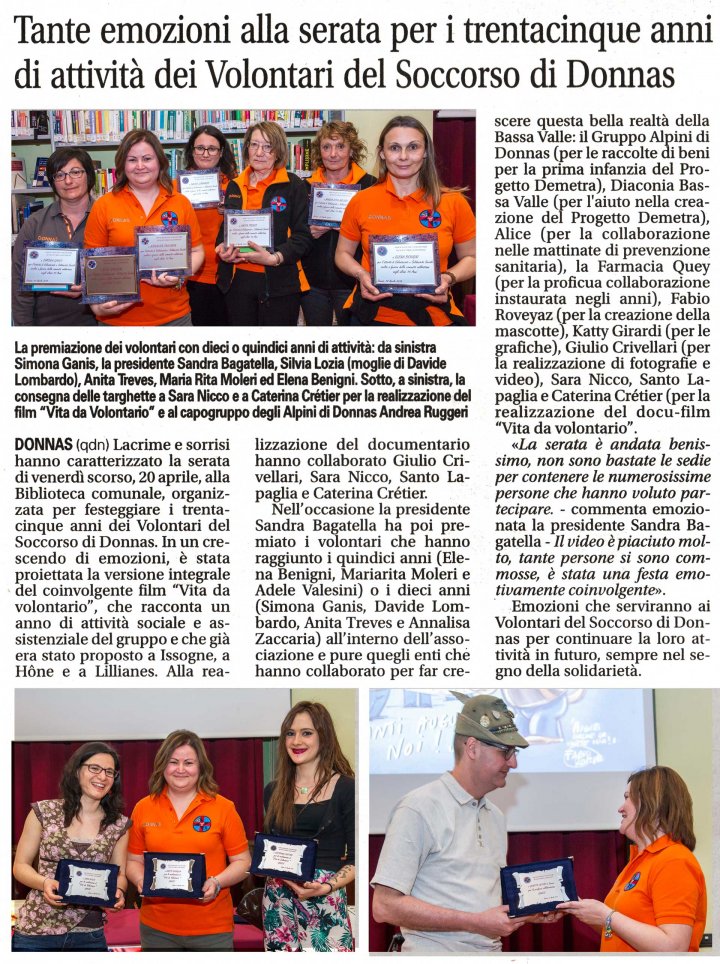 Tante emozioni alla serata per i trentacinque anni di attività dei Volontari del Soccorso di Donnas