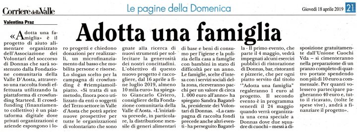 Adotta una famiglia è il progetto di aiuto alimentare organizzato dell'Associazione dei Volontari del soccorso di Donnas