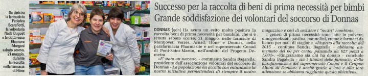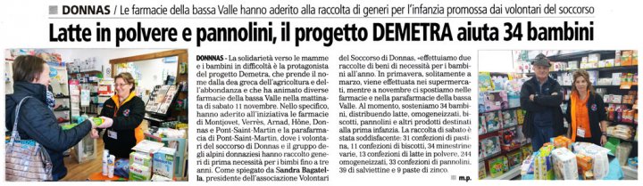 Le farmacie della bassa Valle hanno aderito alla raccolta di generi per l'infanzia promossa dai volontari del soccorso